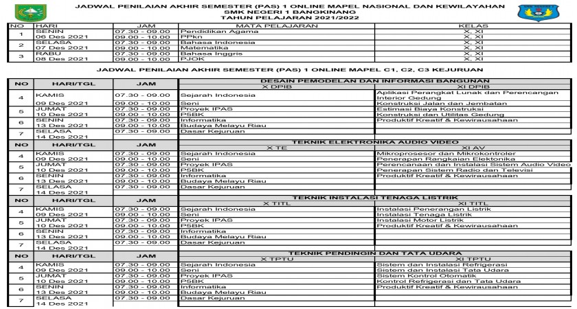 Penilaian Akhir Semester 1 Tahun Pelajaran 2021/2022 kelas X (sepuluh) dan XI (Sebelas) Dilaksanakan tanggal 06 Desember 2021 dan penerimaan raport/ tanggal raport 23 Desember 202