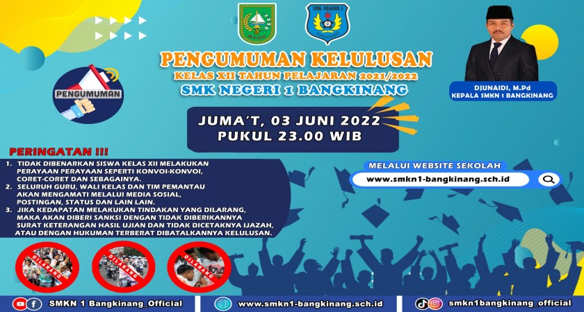 PENGUMUMAN KELULUSAN PESERTA DIDIK KELAS XII SMK NEGERI 1 BANGKINANG TAHUN 2022